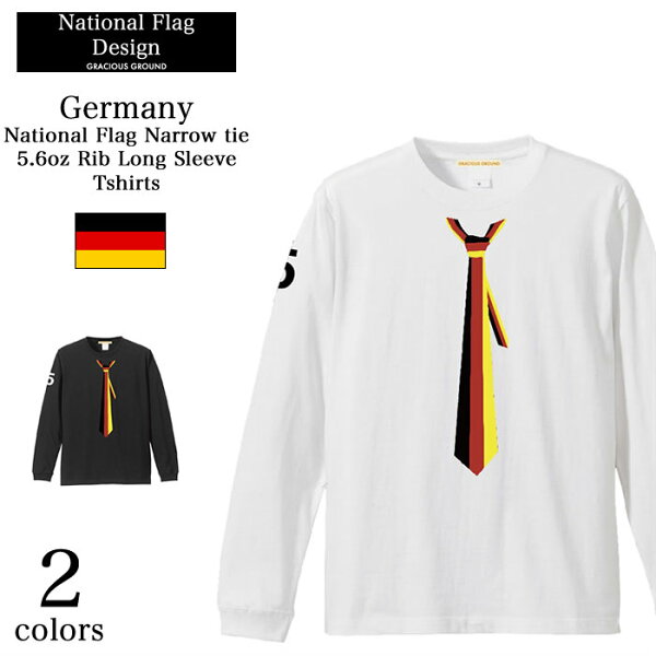 【お揃い・ペアルック、メンズ、レディース】だまし絵 ドイツ 国旗 ネクタイ ロングスリーブ Tシャツ 長袖 リブ付き 5.6(oz(オンス) ユーロ |XS, S、M、L、XLサイズ、メンズファッション・レディースファッション、男女兼用◎ トップス 欧州サッカー強豪国のナショナルフラッグ(国旗)をモチーフに細めのネクタイのトロンプルイユ(だまし絵)! さらに20世紀から現代までの各国を代表する背番号を袖にビッグにプリント! 注目度アップ間違いなしの1枚です。