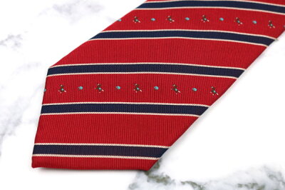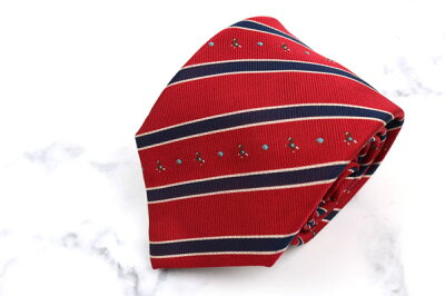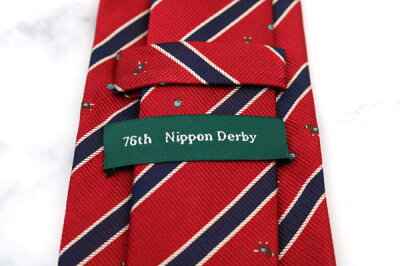 ニッポンダービー 日本ダービー 競馬柄 76th JRA G1 重賞レース シルク ストライプ柄 レッド シルク ブランド ネクタイ 送料無料 【中古】【良品】