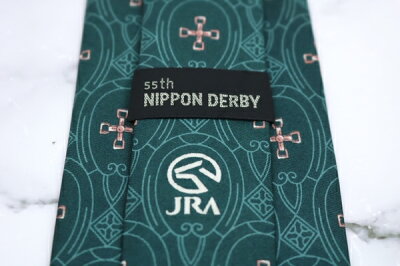 ニッポンダービー 日本ダービー 金具モチーフ 総柄 グリーン シルク ブランド ネクタイ 送料無料 【中古】【良品】