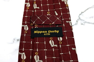 ニッポンダービー 日本ダービー チェック柄 ワインレッド シルク ブランド ネクタイ 送料無料 【中古】【良品】