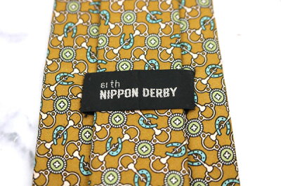 ニッポンダービー 日本ダービー 馬蹄柄 JRA 競馬 日本製 シルク 総柄 ブラウン シルク ブランド ネクタイ 送料無料 【中古】【良品】