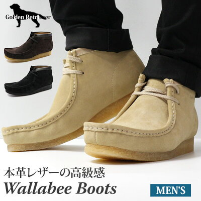 ブーツ メンズ ワラビー 黒 茶 ブラック ダークブラウン ベージュ 本革 スエード モカシン クレープ調 Golden Retriever 7783