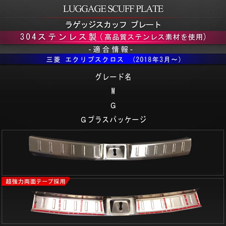 商品名 三菱 エクリプスクロス GK系 ラゲッジ スカッププレート 適合車種 三菱 エクリプスクロス GK系 (MITSUBISHI ECLIPSE CROSS ) 【年式:2018年3月(平成30年3月) 〜】 M G Gプラスパッケージ ※全グレード対応 素材 304ステンレス (SUS304) カラー メッキ仕上げメッキ パーツ数 1 商品説明 ★