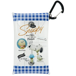 スヌーピー ミニポーチ カラビナ付き クリア マルチケース S アメリカンヴィンテージ ブルーチェック ピーナッツ マリモクラフト ギフト 雑貨 キャラクター グッズ 通販 メール便可 シネマコレクション
